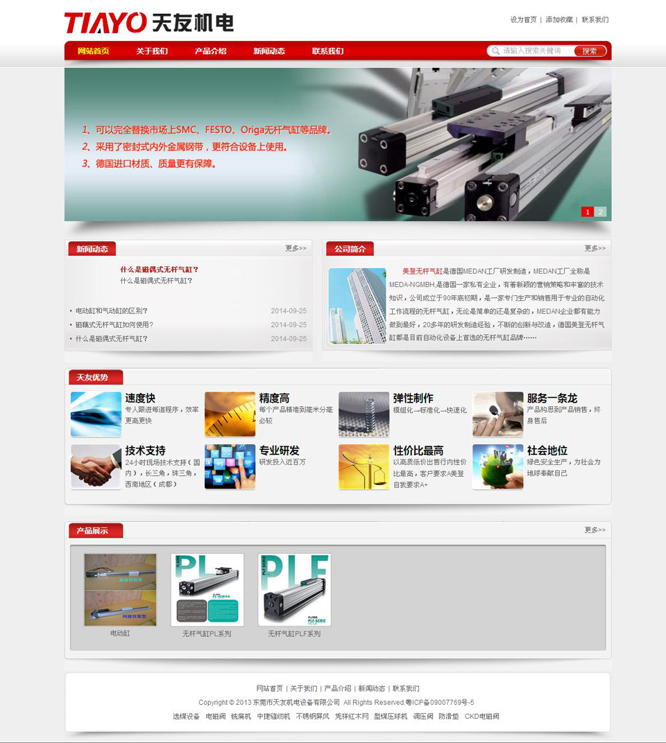 项目名称:东莞市天友机电设备有限公司 签定时间:2013-12-4 项目网址:http://www.gdmedan.com/ 项目简介: 东莞市天友机电设备有限公司成立于2006年,座落于中国制造业名镇----东莞市长安镇,