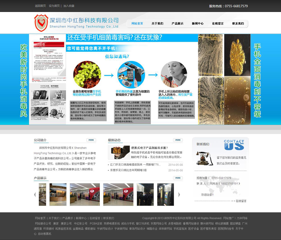 深圳市中红彤科技有限公司(ShenzhenHongTongTechnologyCo.,Ltd.)是中国第一家专业从事便携式电子产品杀菌消毒的高科技公司,公司继承了多年电子产品和设备开发、研究、创新的经验,首创中国第一家便携式电子产品杀菌消毒专业公司,并拥有相关多项专利,为新的消毒杀菌事业注入新的概念,成为这一新兴行业的领航人。