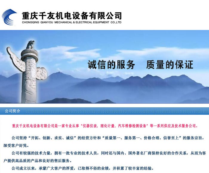 项目名称:重庆千友机电设备有限公司 签定时间:2014-2-25 项目网址:http://www.cqqyjd.com 项目简介: