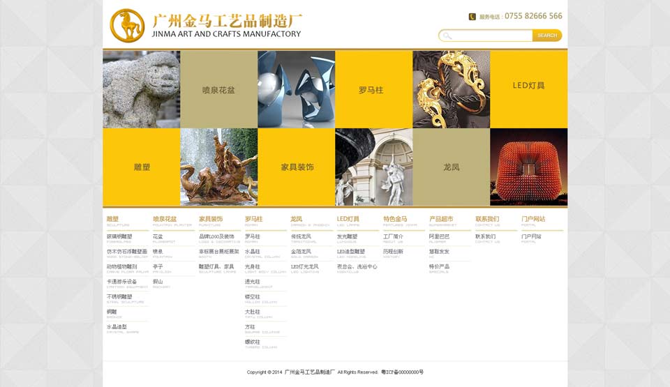 项目名称:广州金马工艺品制造厂 签定时间:2014-4-2 项目网址:http://www.jinmaart.com 项目简介: 20年历史的制造厂,致力于配合设计师完成其奇思妙想。先进完善的制造工艺多种手法的表面处理,