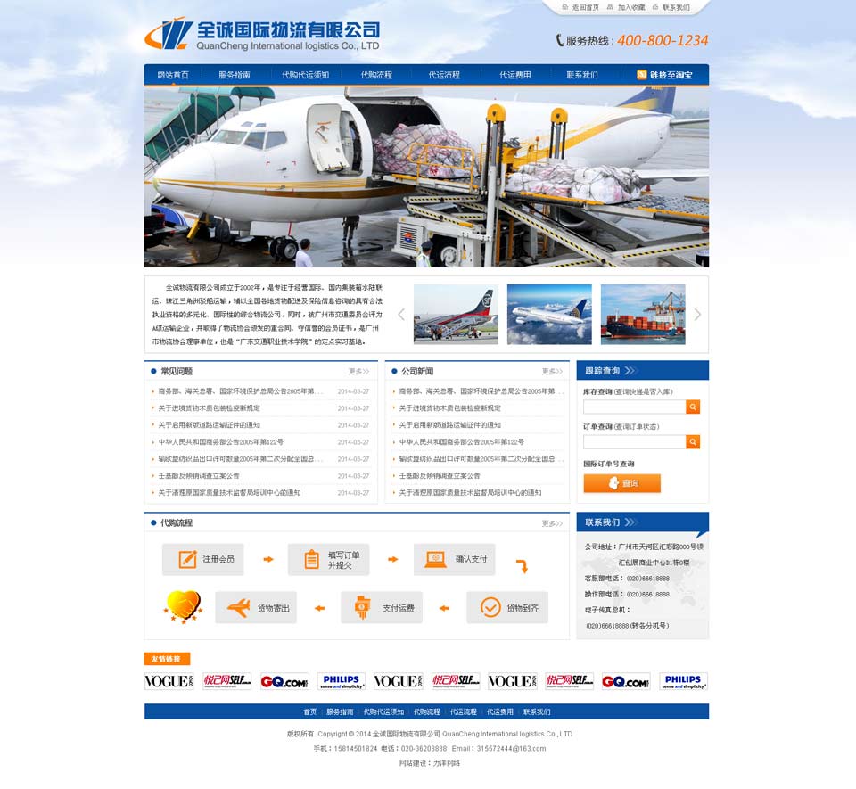 项目名称:全诚国际物流有限公司 签定时间:2014-9-17 项目网址:http://www.quanchengexpress.com/ 项目简介: 全诚国际物流有限公司是一家集中国采购、国际空运,海运、仓储、包装、清关送货