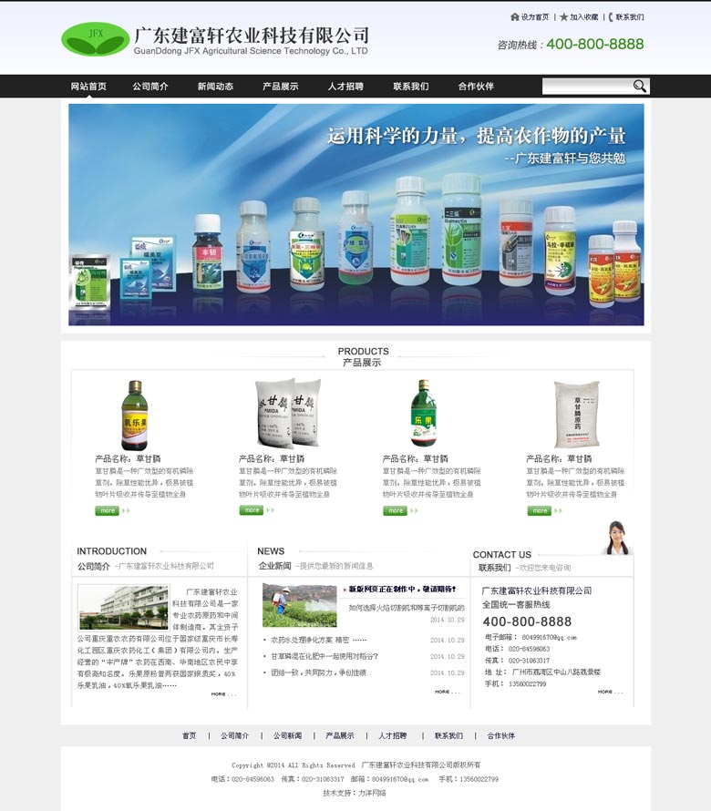 项目名称:广东建富轩农业科技有限公司 签定时间:2014-11-13 项目网址:http://www.jfx668.com 项目简介: 广东建富轩农业科技有限公司是一家专业经营农业原药的贸易公司。其全资子公司重庆重农农药有限