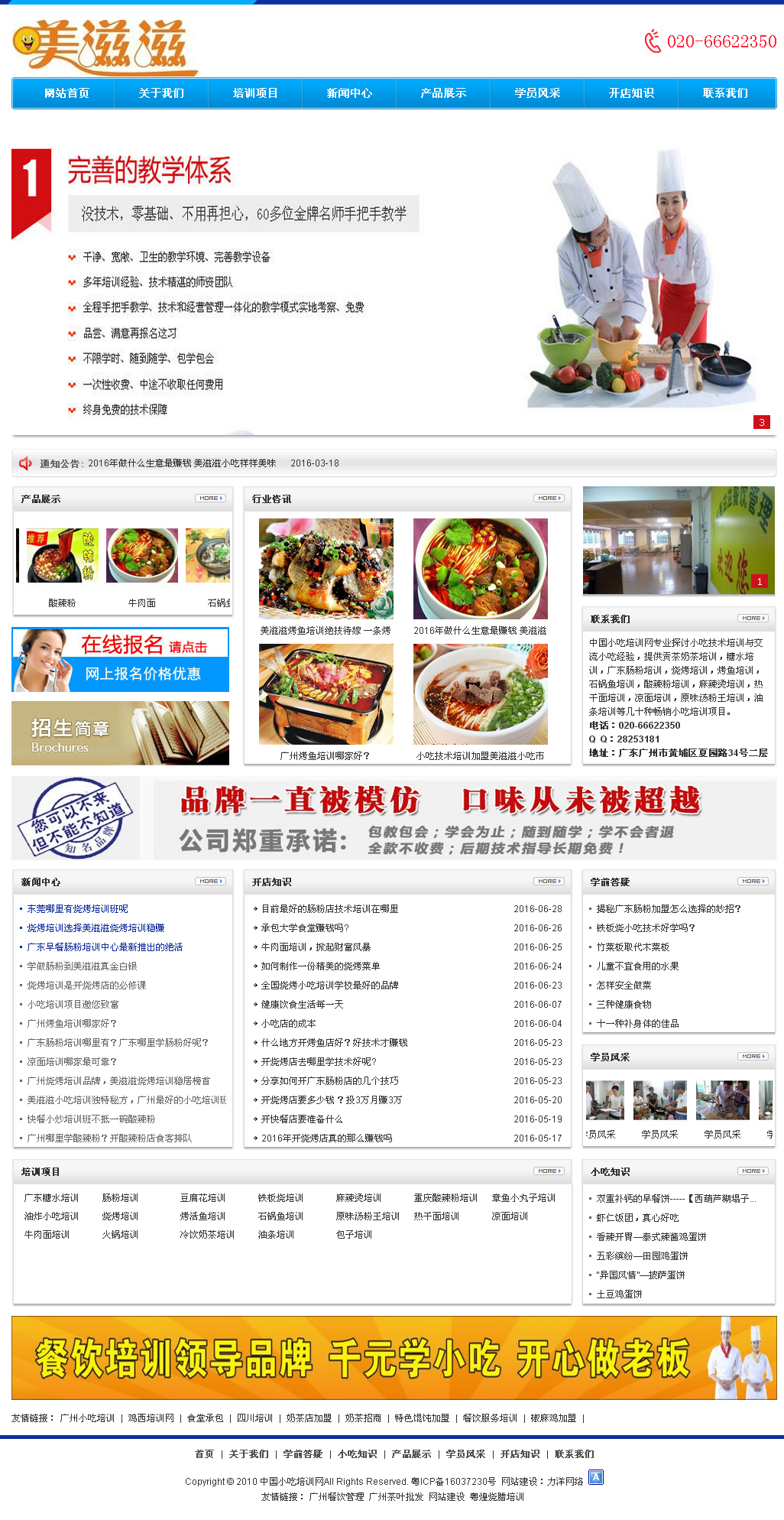 美滋滋小吃培训多次被评为“优秀企业”“质量诚信消费者满意单位”和“示范窗口培训单位”等光荣称号。多年来,美滋滋小吃培训以成功培训上万名学员为骄傲,我们是全国规模最大,最专业的小吃培训机构之一。广州美滋滋小吃培训以“做中国最好的小吃培训”为己任,以“为弘扬中国传统小吃文化”为目标,致力于科学培养,符合当前餐饮管理、制作和服务为一体的餐饮小吃行业高技能人才。
