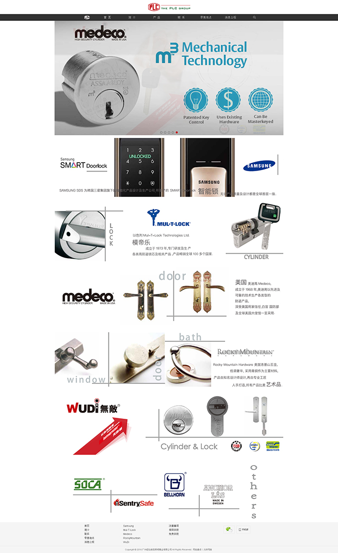 广州绍伦锁类照明商业有限公司"为香港PLC集团之附属公司,负责中国国内之防盗产品分销工作,提供的产品有﹕Medeco美迪高门锁、Mul-T-Lock模帝乐防盗门锁、WuDi无敌锁、Samsung三星电子锁等。