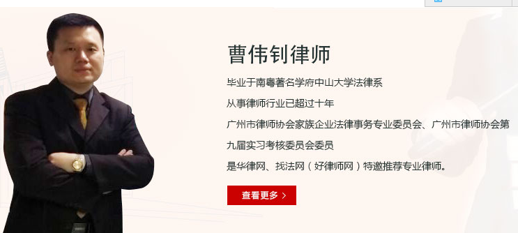 曹伟钊律师,广州籍,毕业于南粤著名学府中山大学法律系,从事律师行业已超过十年 ,现为中国民主促进会会员(民主党派),广州市律师协会家族企业法律事务专业委员会、广州市律师协会第九届实习考核委员会委员,是华律网、找法网(好律师网)特邀推荐专业律...