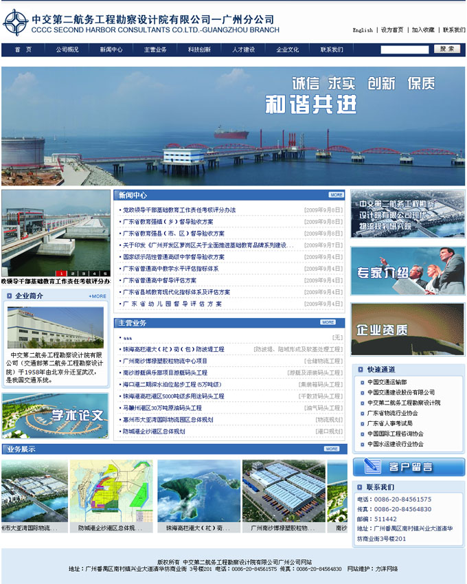 中交第二航务工程勘察设计院有限公司广州分公司网站建设项目顺利完成,完成时间:2009年9月20日测试网址:http://32.51action.com.cn/网站首页效果