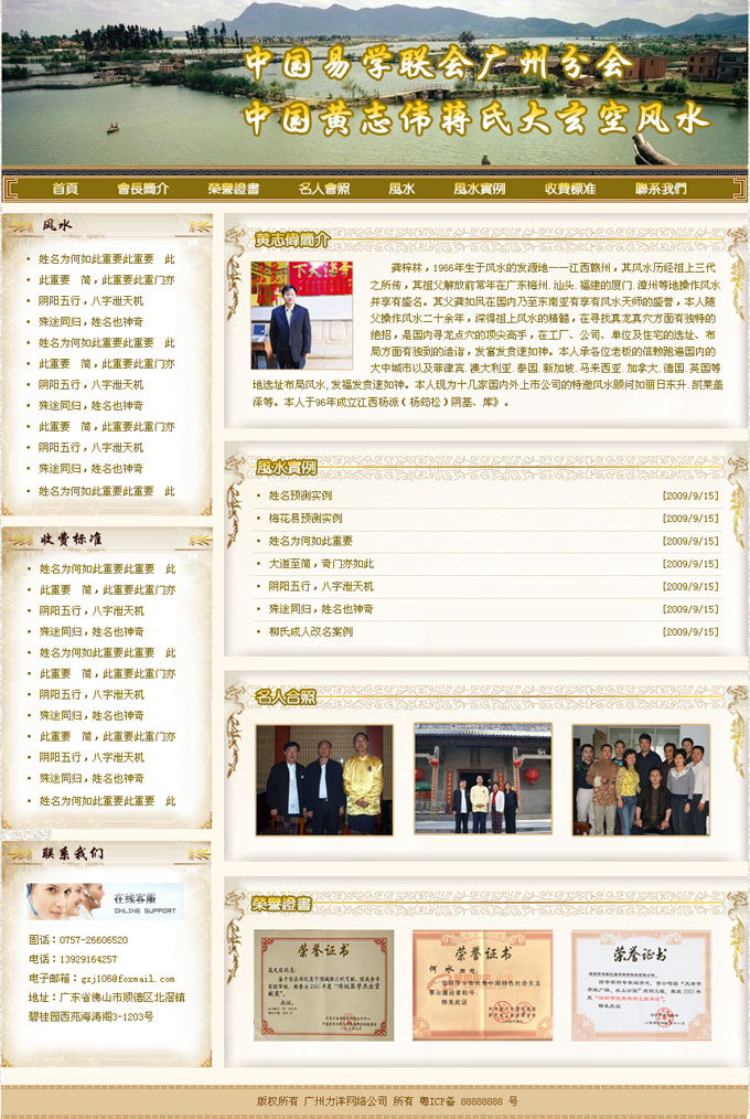 项目名称:黄志伟风水大师网站建设协议(易学联会广州分会)签定日期:2009年10月13日首页效果: