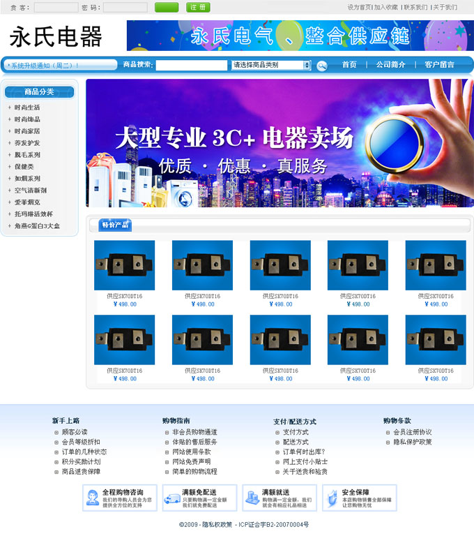 项目名称:广州永氏电气公司网站建设签定日期:2009年12月16日公司简介:广州永氏电气公司经营:电工室内材料,排水管、给水管、通风设备等等。经营批发多年,经营范围,遍布珠三角,在行业中基本熟识本公司。本公司一贯以来,以诚信取信于朋友,取信