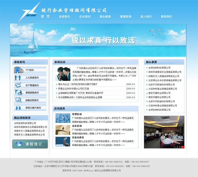 项目名称:锐行企业管理顾问有限公司签定日期:2010年1月11日网站首页效果:
