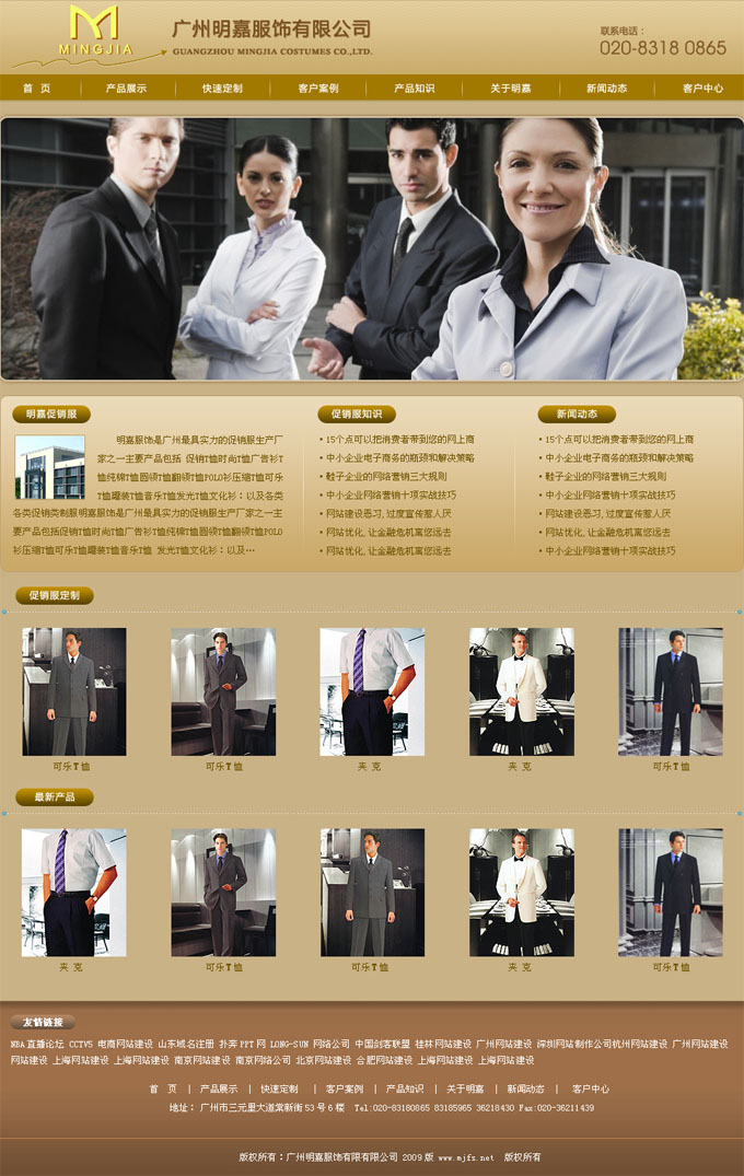 项目名称:广州明嘉服饰有限公司网站建设签定日期:2010年1月23日明嘉服饰,2001年成立于广州。是一间集体设计、生产为一体的制服公司。明嘉有一批朝气蓬勃的设计队伍,明嘉设计师获得“广东省第三届十佳设计师”称号。现有生产员工300多名,技