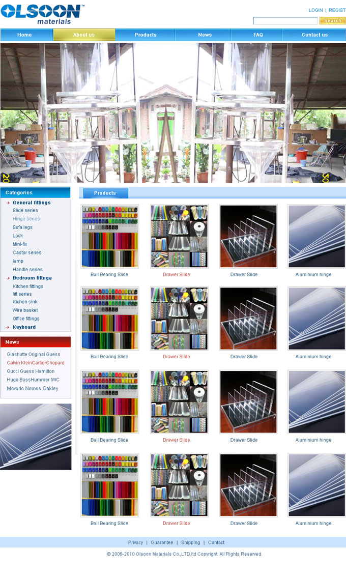 项目名称:澳森新型材料有限公司网站建设签定日期:2010年2月1日澳森新型材料有限公司,位于广州主要经营有机玻璃这一块产品有3大类1。有机玻璃棒材管材气泡管异型材2.有机玻璃镜面3.挤压型有机玻璃板材,公司产品全部环保节能公司经营理念:诚信