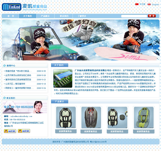 项目名称:麦凯婴童用品科技有限公司网站建设签定日期:2010年3月22日公司简介:广东汕头麦凯婴童用品科技有限公司是一家集设计、生产和销售汽车儿童安全座椅为一体的大型企业。公司成立于2006年,秉承“为全世界儿童提供最安全、舒适、美观和实用