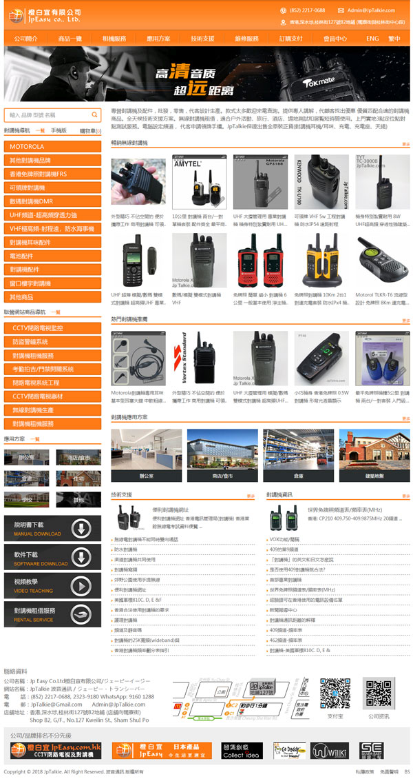 项目名称:JpEasyCo.,Ltd/橙白宜有限公司网站制作 签订时间:2018-12-26 项目网址:www.jpeasy.com 公司简介: JpTalkie波音通訊”成立於2001年專門經營通訊商品,擁有多年豐富經驗,專業的團隊