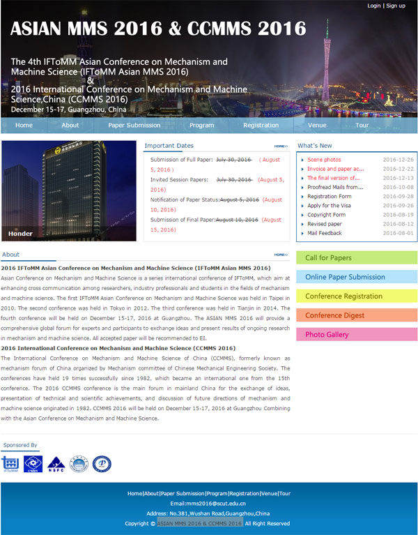 项目名称:ASIANMMS2016&CCMMS2016做网站 签订时间:2019-2-25 项目网址:www.ismnm.org 公司简介: 2016IFToMMAsianConferenceonMechanismandMach