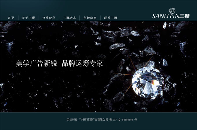 项目名称:三狮广告有限公司网站建设签定日期:2010年4月6日首页设计稿:三狮广告,是由一群业内最前端的品牌策划和创意精英组成,思想至上,创意因子可谓永无止境。在实战中直置身于品牌塑造与品牌运筹的最前沿,以独特的洞察力、市场的精准力、品牌的