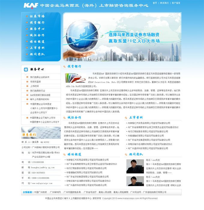 项目名称:中国企业马来西亚(海外)上市融资咨询服务中心网站建设