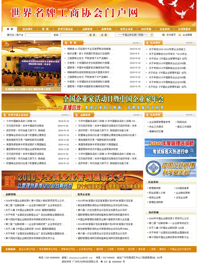 项目名称:世界名牌工商协会网站建设签定日期:2010年6月8日网站首页设计稿:
