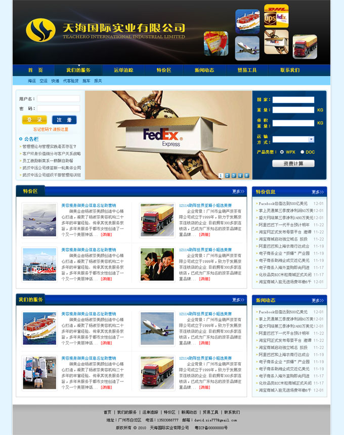项目名称:天海国际实业有限公司网站建设