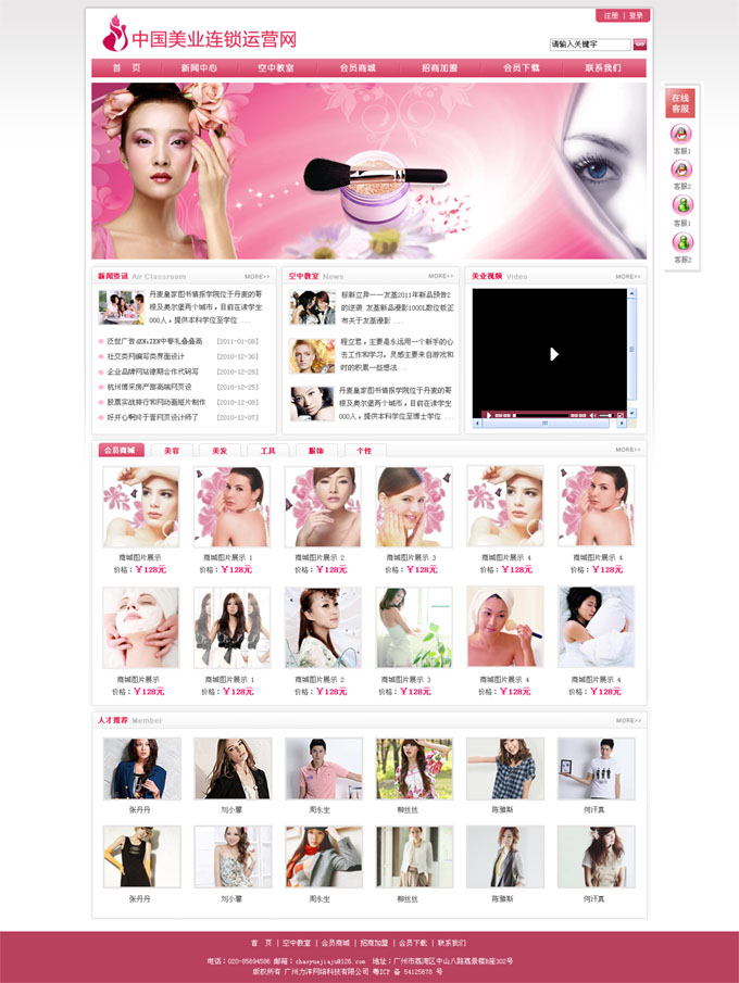 项目名称:中国美业连锁运营网网站制作签定日期:2011年1月11日网站首页设计稿:(缩略图)