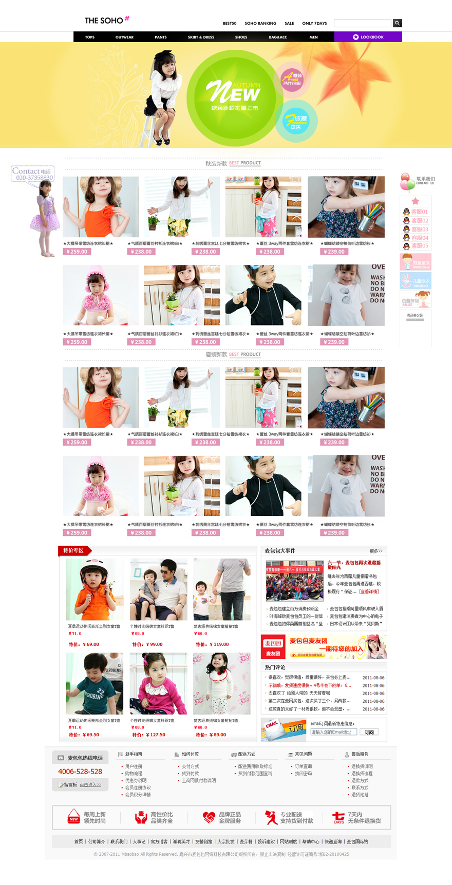 项目名称:童装批发网网站建设签定日期:2011年7月10日网站首页设计稿:(缩略图)