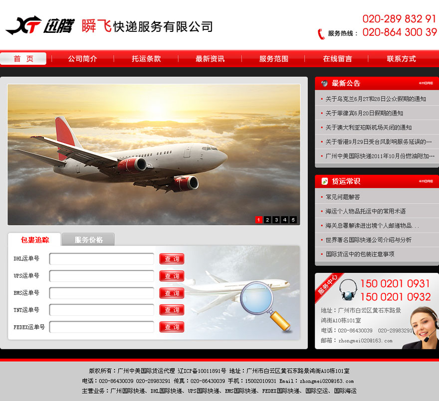 项目名称:广州迅腾国际货运代理网站建设签定日期:2011年10月7日公司网址:http://www.gs-oa.com公司简介:迅腾国际货运代理是平信货运代理有限公司旗下一级代理,获得中国政府批准的合法经营国际快递、国际空运业务的专业化国际