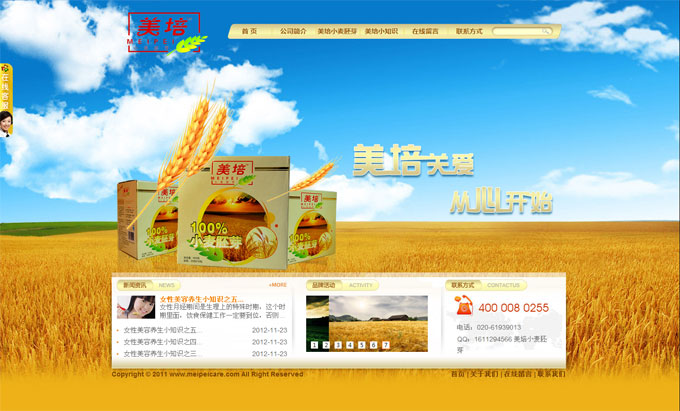 项目名称:广州飏帆贸易有限公司网站建设签定日期:2011年11月26日网址:http://www.meipeicare.com/广州飏帆贸易有限公司,2004年开始至今,从事小麦胚芽的推广工作。从每一片胚芽的精挑细选,原材料的运输,产品的加