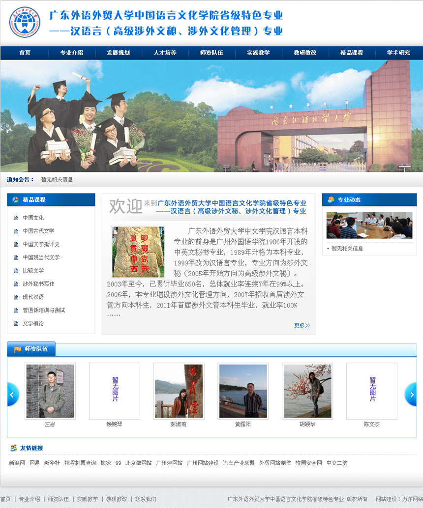 项目名称:广东外语外贸大学网站建设签定日期:2011年11月29日网址:http://www.gwzwhyy.com/ 广东外语外贸大学中文学院汉语言本科专业的前身是广州外国语学院1986年开设的中英文秘书专业,1989年升格为本科专业,