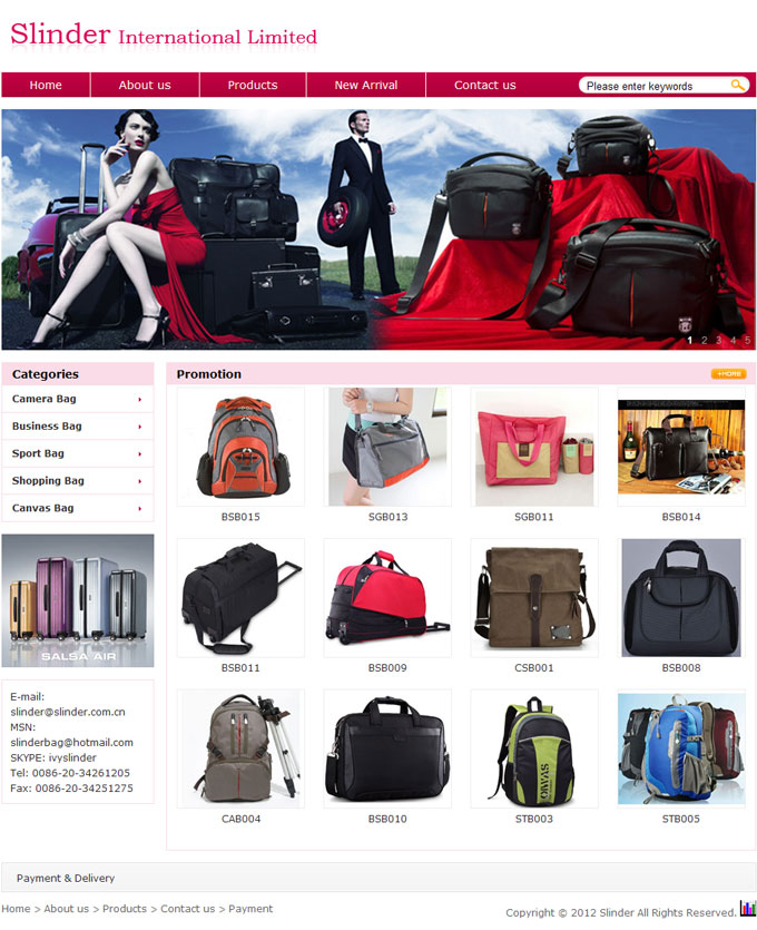 项目名称:SlinderInternationalLtd.网站建设签定日期:2012年3月28日网址:http://www.slinder.com.cnSlinderInternationalLtd.isaprofessionalbagma