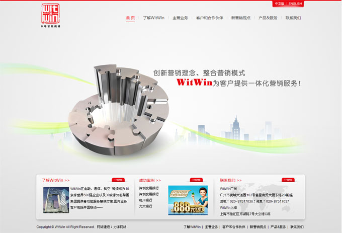 项目名称:广州慧盈广告有限公司网站建设签定日期:2012年3月31日网址:http://www.witwinchina.comWitWin在金融、通信、航空等领域,为世界500强知名跨国集团提供着综合性市场解决方案,现国内业务客户主要包括中