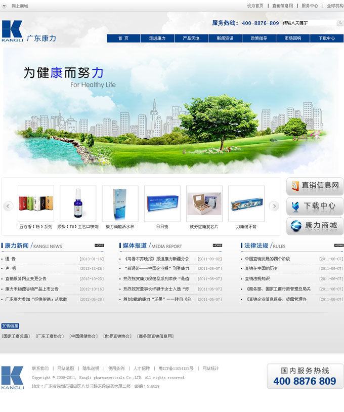 项目名称:广东康力药业有限公司网站建设签定日期:2012年4月20日网址:http://www.kang-li.com广东康力医药有限公司成立于1996年8月,注册于深圳市,注册资本8000万元,是一家集医药、物流、直销、电子商务、加盟连锁