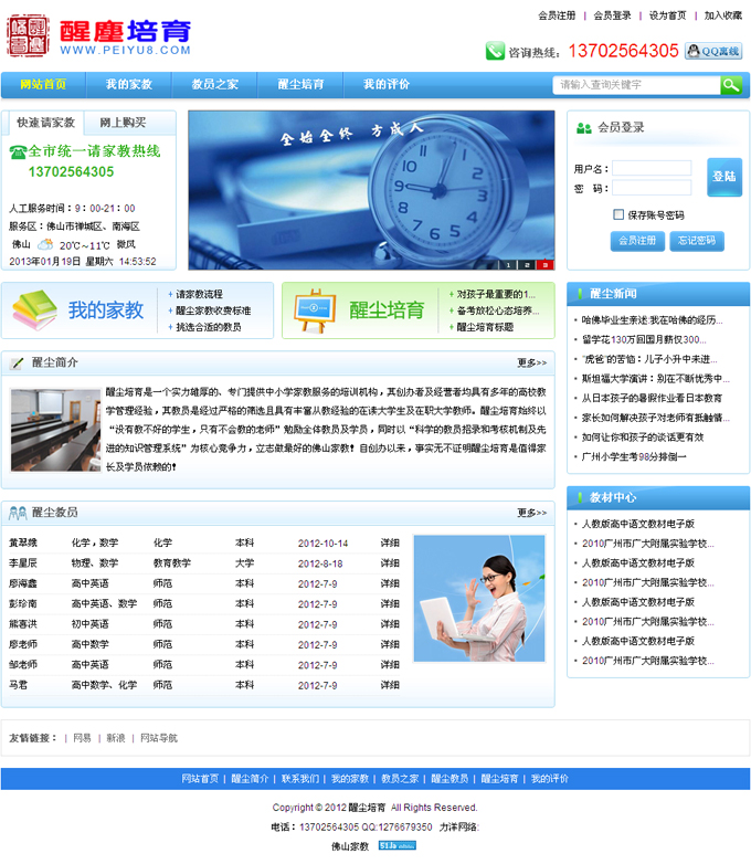 项目名称:醒尘陪育网站建设签定日期:2012年6月19日网址:http://www.peiyu8.com醒尘培育是一个实力雄厚的、专门提供中小学家教服务的培训机构,其创办者及经营者均具有多年的高校教学管理经验,其教员是经过严格的筛选且具有丰