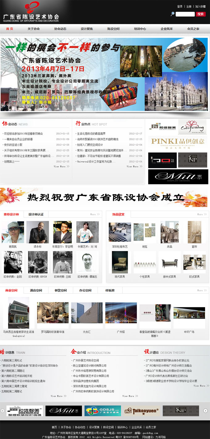 项目名称:广东省陈设协会签定日期:2012年9月11日网址:http://www.gacdi.com广东省陈设艺术协会是在广东省民间组织管理局登记注册,是陈设艺术行业唯一的全省性法人社团。协会2012年7月成立,以发展中国空间陈设艺术业为己