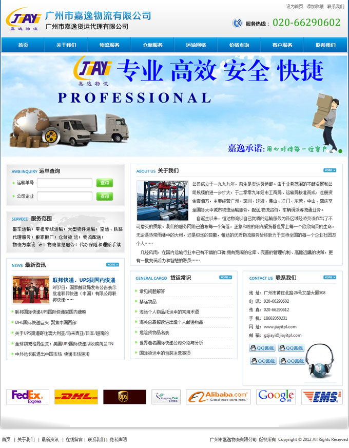 项目名称:广州嘉逸货运代理网站建设