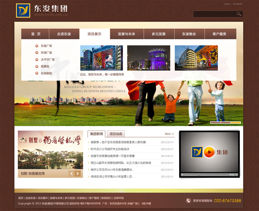 项目名称:东浚集团网站建设签定日期:2013年3月10日网址:http://www.dongjun.cn东峻集团成立十余年以来,坚持秉承开拓进取、以人为本、服务大众的精神,根植广州,面向全国。公司目前累计投资中国内地市场近百亿元人民币。已经