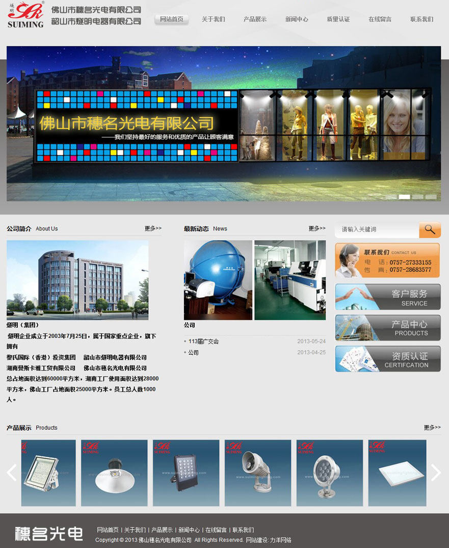 项目名称:佛山穗名光电网站建设签定日期:2013年4月2日网址:http://www.suiminglighting.com佛山穗名光电有限公司,韶山市燧明电器有限公司专注于LED灯具的研发、生产、销售。和广东佛山大学、湖南工业大学、中南大