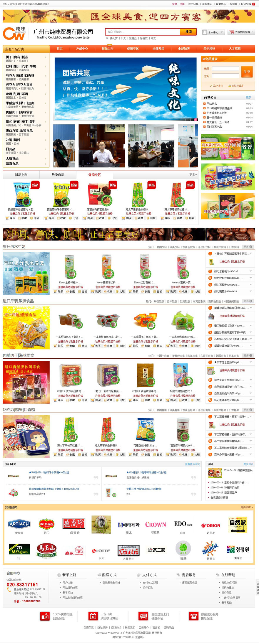 项目名称:广州纯味贸易有限公司网站建设签定日期:2013年4月27日网址:http://www.gzcw123.com广州市纯味贸易有限公司前身是零食物语连锁店,创建于1997年2月8日,因生意蒸蒸日上业务快速发展,于2007年3月18日成