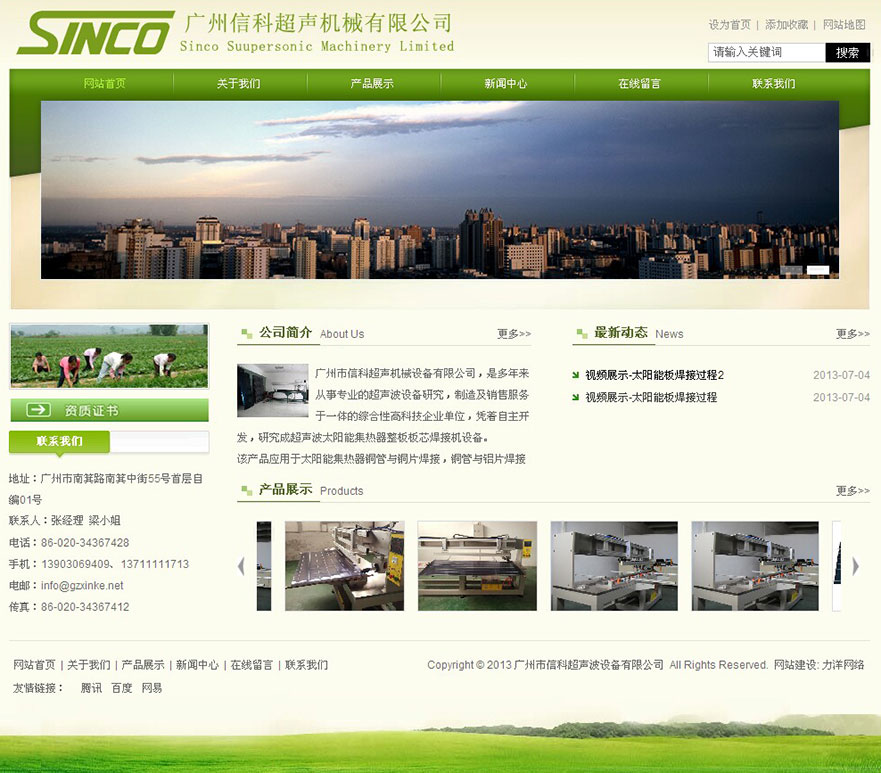 项目名称:广州市信科超声机械设备有限公司网站建设