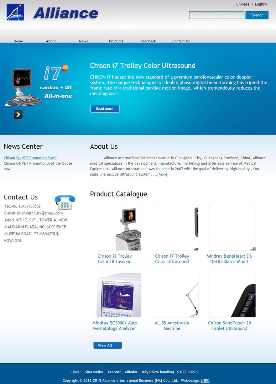 Alliance International was founded in 2007 with the goal of delivering high-quality , Our sales line include Ultrasound system, Operation room equipments, traditional Chinese medical products, Home care and emergency equipment.
