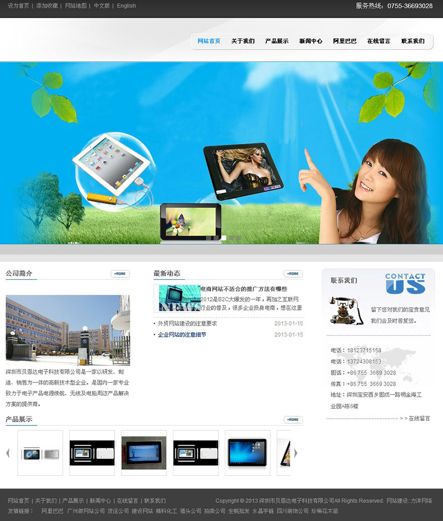 项目名称:深圳市贝恩达电子科技有限公司网站建设签定日期:2013年6月3日网址:http://www.beienda.com深圳市贝恩达电子科技有限公司是平板电脑,移动电源.数码摄像机,网络高清播放器。等产品专业生产加工的公司,拥有完整、科