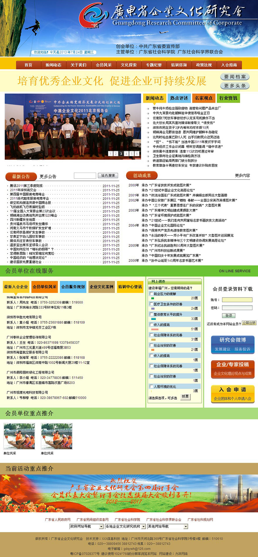 项目名称:广东省企业文化研究会网站建设签定日期:2013年7月1日网址:http://www.gdqywh.org.cn面对国内与国际市场的一体化以及日益激烈的国际竞争,如何增强企业的国际竞争力已经成为广东社会经济发展能否继续保持在全国领先