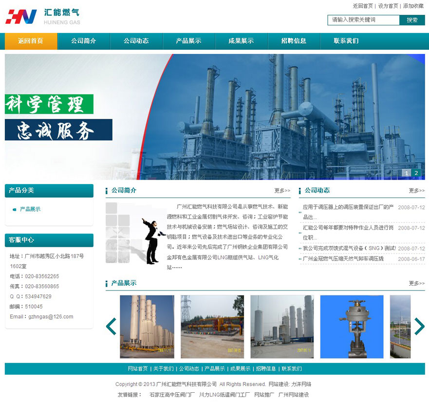 项目名称:广州汇能燃气科技有限公司网站建设签定日期:2013年7月10日网址:http://www.huinenggas.com广州汇能燃气科技有限公司是从事燃气技术、新能源燃料和工业金属切割气体开发、咨询;工业窑炉节能技术与机械设备安装;
