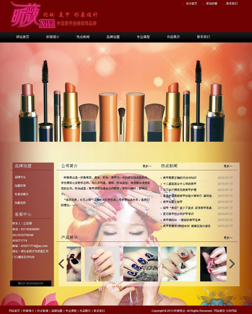 项目名称:昕薇美业德网站建设签定日期:2013年7月12日网址:http://www.xinweimeiye.com昕薇美业是一所集美容、美发、彩妆、美甲为一体的综合性造型机构。学校拥有众多教学名师。与众多明星、模特、时尚杂志、电视媒体保持