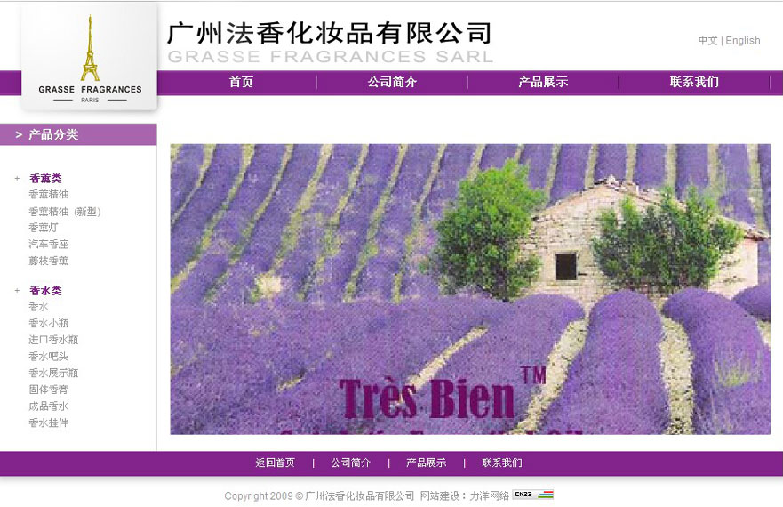 项目名称:法香化妆品网站建设签定日期:2013年7月18日网址:http://www.parfums.com.cn广州法香化妆品有限公司是由位于法国“香精之都”格拉斯的GRASSEFRAGRANCES香精公司2004