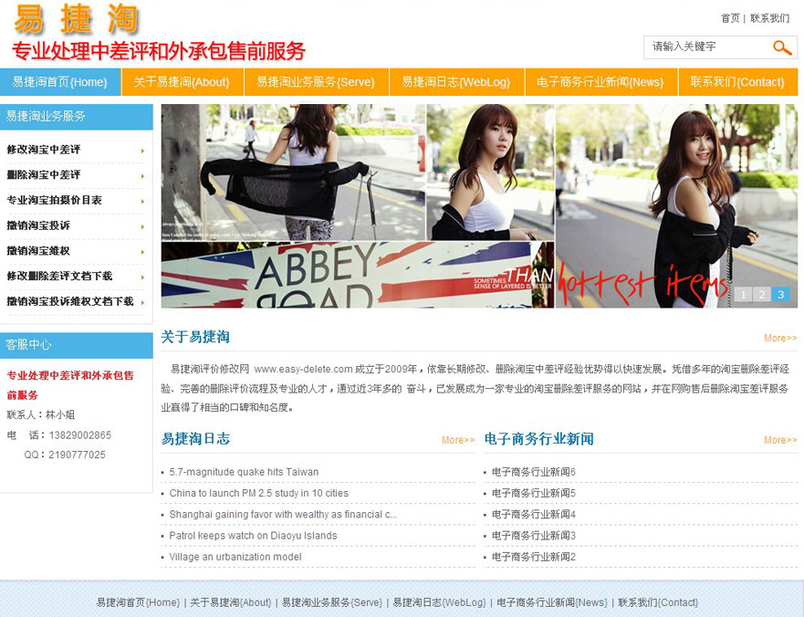 项目名称:易捷淘网站建设签定日期:2013年7月26日网址:http://www.easy-delete.com易捷淘评价修改网www.easy-delete.com成立于2009年,依靠长期修改、删除淘宝中差评经验优势得以快速发展。凭借多