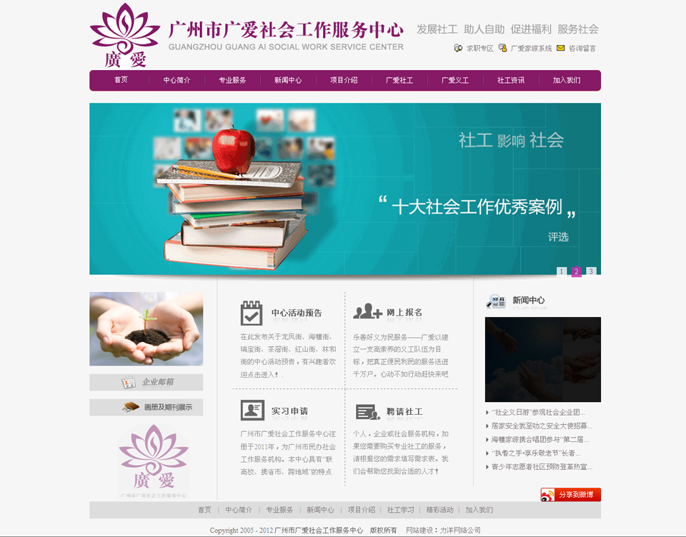 项目名称:广州市广爱社会工作服务中心 签定时间:2013-10-24 项目网址:http://www.gzguangai.com/ 项目简介: 广州市广爱社会工作服务中心(以下简称“广爱”)是一家为社会大